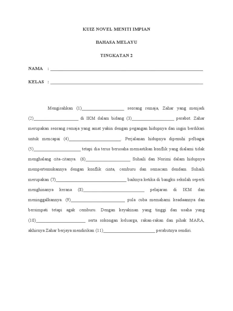 Sinopsis Meniti Impian Tingkatan 2 / Ringkasan Novel Pdf Analisis Lengkap Novel Meniti Impian Sinopsis Novel Meniti Impian Menceritakan Kegigihan Remaja Bernama Zahar Berusaha Course Hero. Senarai novel komsas tingkatan 1 hingga tingkatan 5. Novel bm / bahasa melayu tingkatan 2, pt3 (pentaksiran tingkatan 3). Berikut adalah sinopsis, kupasan dan ulasan ikut bab novel jendela menghadap jalan, novel komsas bagi tingkatan 4 mulai 2015. Abang rashid telah menasihatinya supaya balik ke rumah kerana. Kupasan novel tingkatan 4 dan tingkatan 5 (zon 1 : Ketika lili meniti bendang untuk menemui nenek, dia ternampak seorang lelaki mengepit seekor ayam jantan dan seorang lagi mengepit seekor ayam betina.